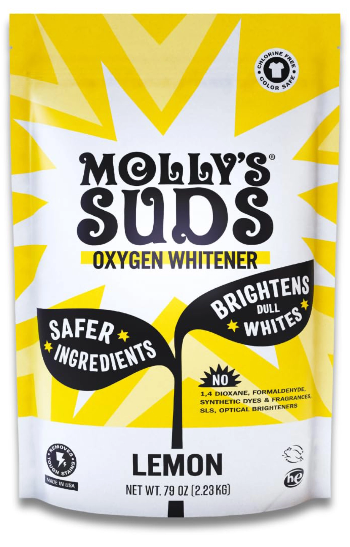 Molly’s Suds Oxygen Whitener brightens whites and removes stains with a chlorine-free, color-safe formula. Powered by pure lemon essential oil, it’s a safe, eco-friendly bleach alternative.