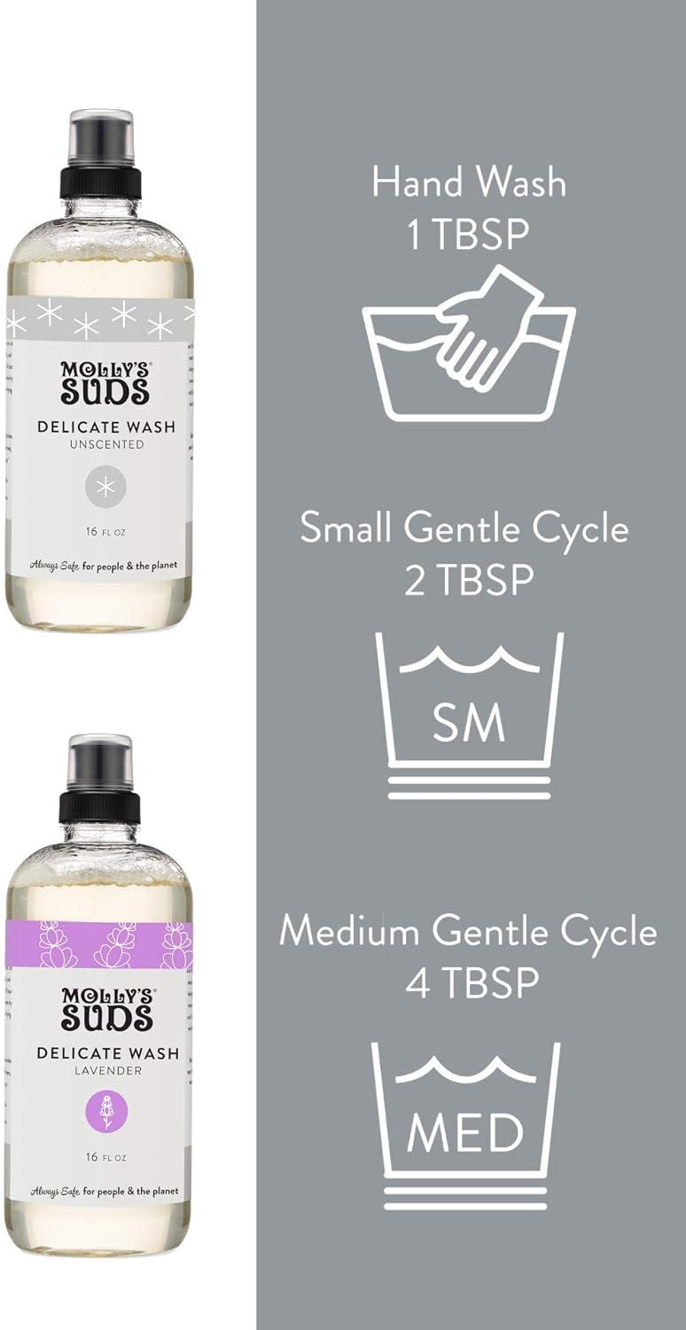 Molly’s Suds Delicate Wash Liquid Laundry Soap | Clean, Simple Ingredients | Gently Removes Stains and Deodorizes | Lavender Scented, 16 fl oz(Unscented)