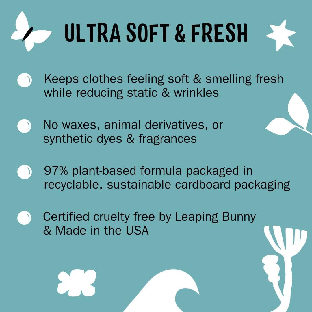 SOFT-STATIC FREE CLOTHES: Our 97% plant-based dryer sheets employ a gentle fabric softening technology to leave clothes feeling fresh, cozy, and comfy. Better for people with sensitive skin, the environment, and your dryer, these dryer sheets effectively eliminate static so you and your clothes look and feel your best
