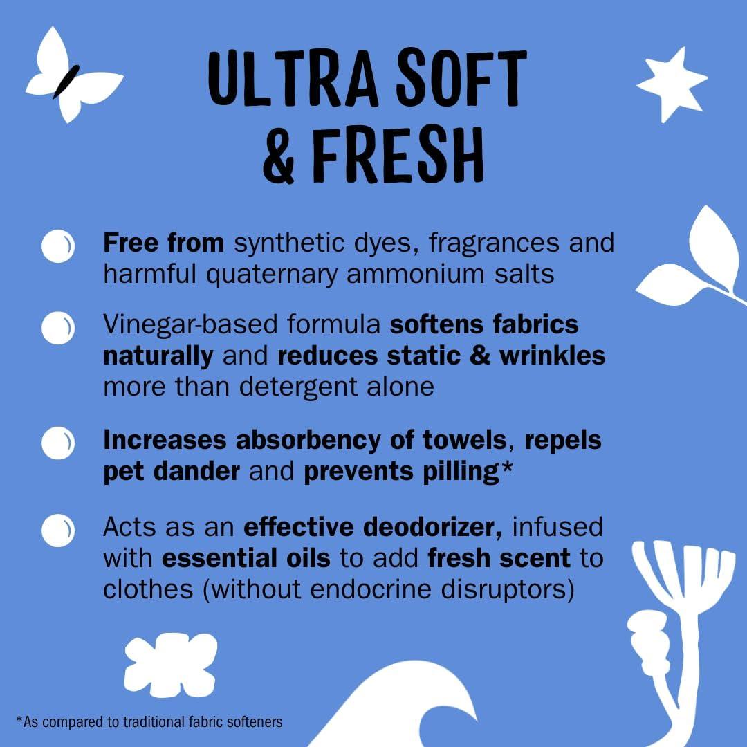 SOFT, STATIC FREE CLOTHES: Unlike traditional fabric softeners that can deposit residues on clothes, Molly’s Suds vinegar-powered Fabric Softener uses simple ingredients (no harmful quaternary ammonium compounds!) to leave clothes feeling fresh, cozy, and comfy. Ideal for sensitive skin, the planet, and all washing machines. Our clean formula reduces static and wrinkles more than detergent alone, so you and your family can look and feel your best.