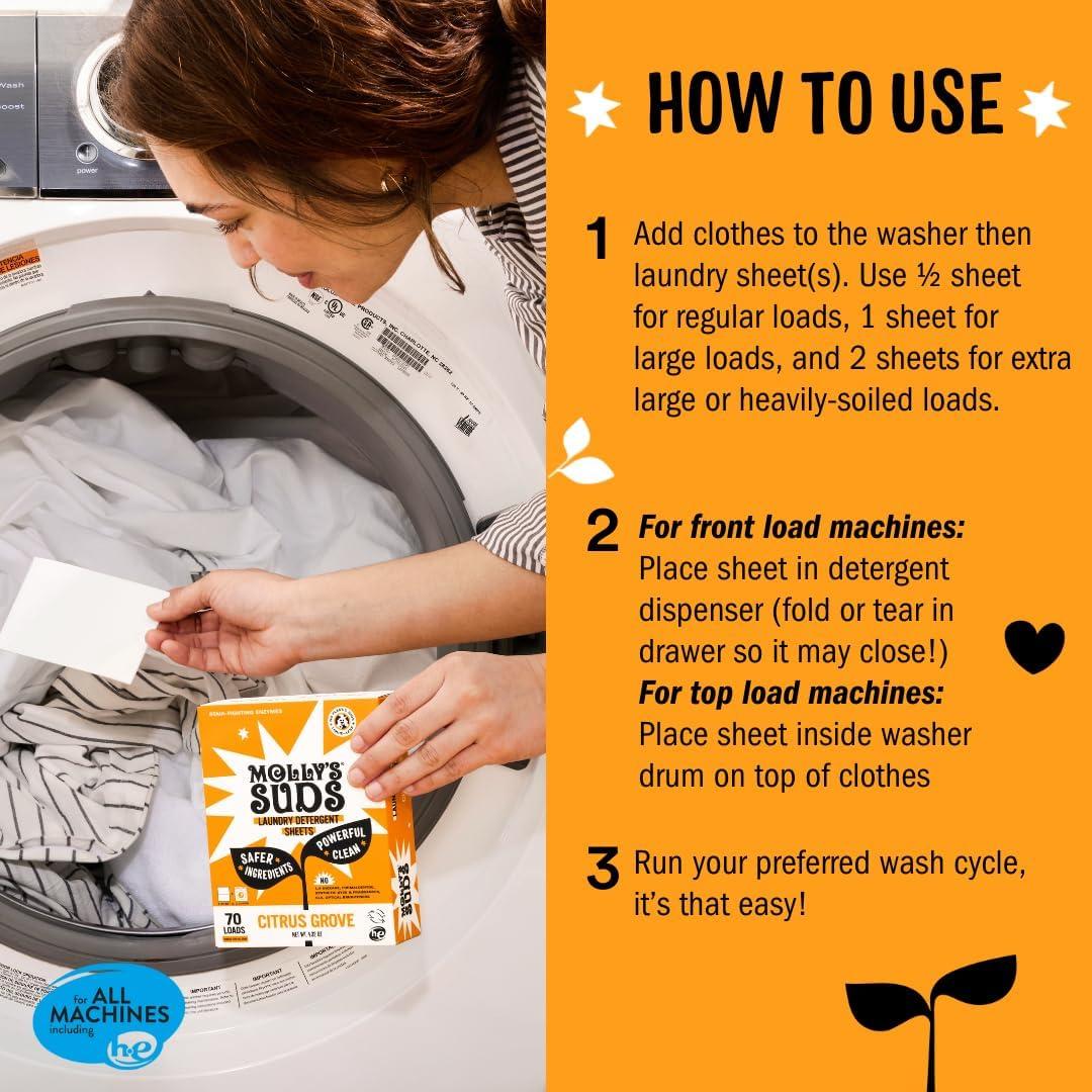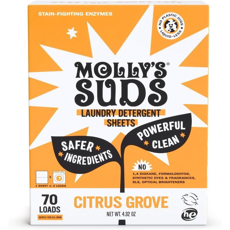 imageMollys Suds Laundry Detergent Sheets  Gentle on Sensitive Skin Powerful BioBased Enzymes StainFighting  Liquidless ampamp PlasticFree Packaging  70 Loads PeppermintCitrus Grove
