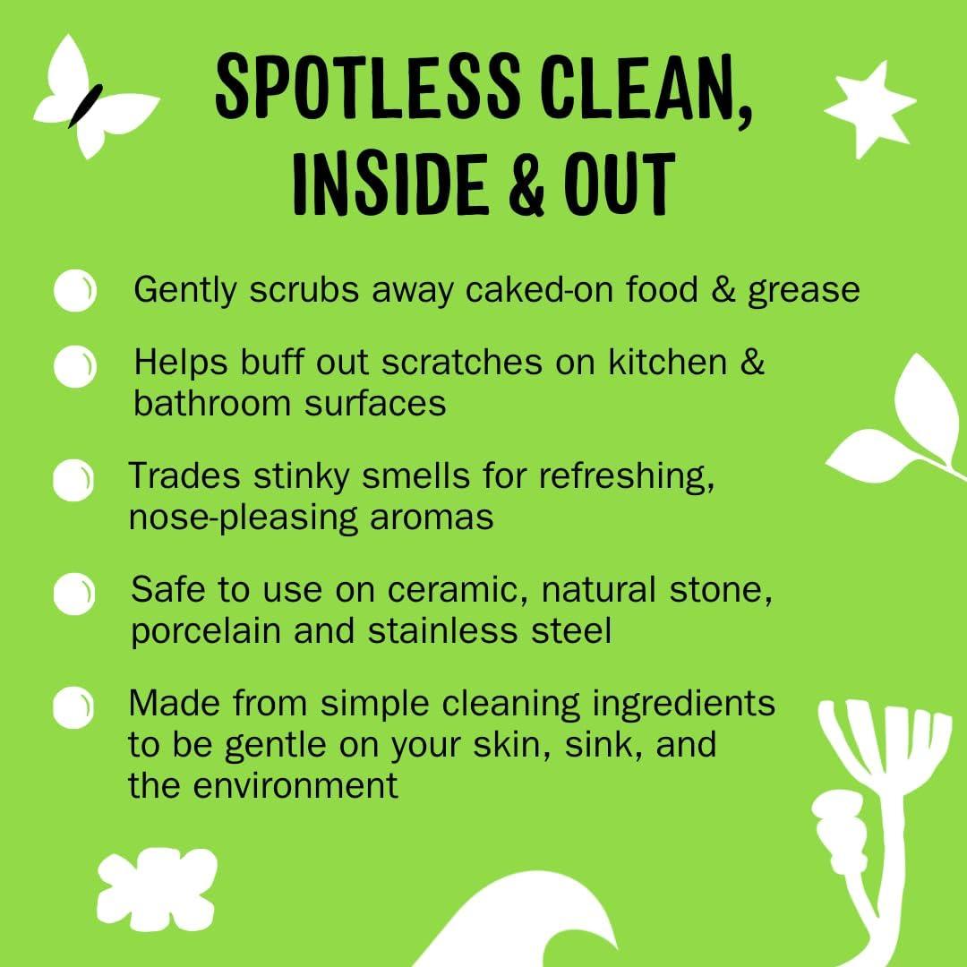 SAFER INGREDIENTS, POWERFUL CLEAN: Our sink cleaner washes away grease, grime and tough food debris while removing unpleasant odors. Baking soda gently scrubs away tough dried food and grease without scratching your sink surfaces.